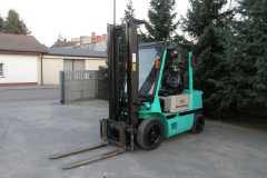 Witam. Przedmiotem sprzedaży jest wózek widłowy MITSUBISHI FD25 Diesel z 1995 roku . Wózek jest sprowadzony z Niemiec , posiada przebieg 11700h , wysokość podnoszenia 3,30m , przesuw boczny , widły 1,20m , oświetlenie robocze , oświetlenie drogowe , kierunkowskazy . Cena 20000 zł dla exportu i sprzedaży wewnątrzwspólnotowej. Tel. 698080819.
